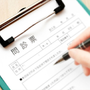 問診票に記載をお願いします。問診票記入後、順番に診察をさせていただきます。