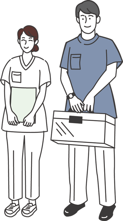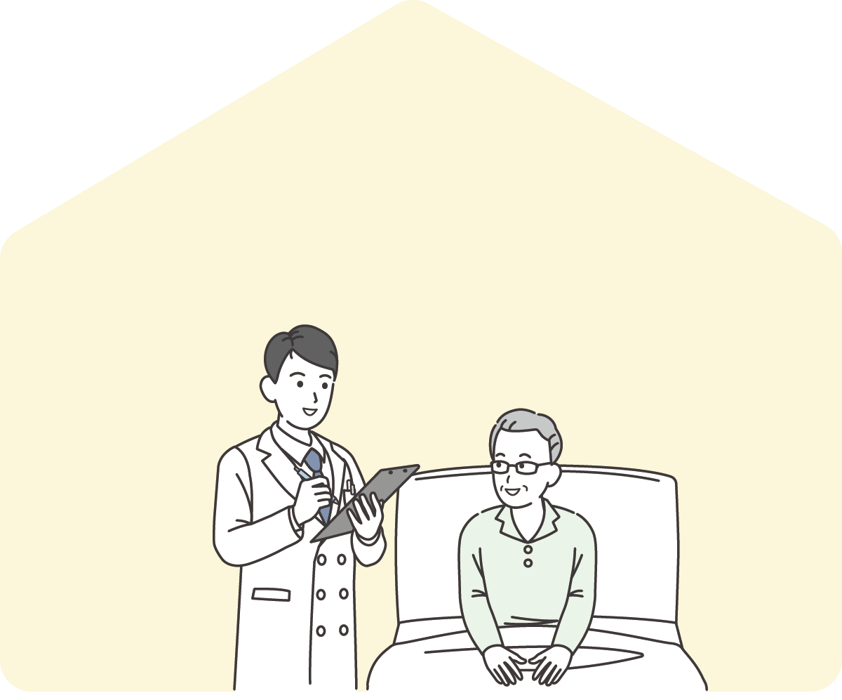 医師が訪問し、診察と治療を行います。ご心配な点やご不安な点などは、遠慮なく医師にご相談ください。